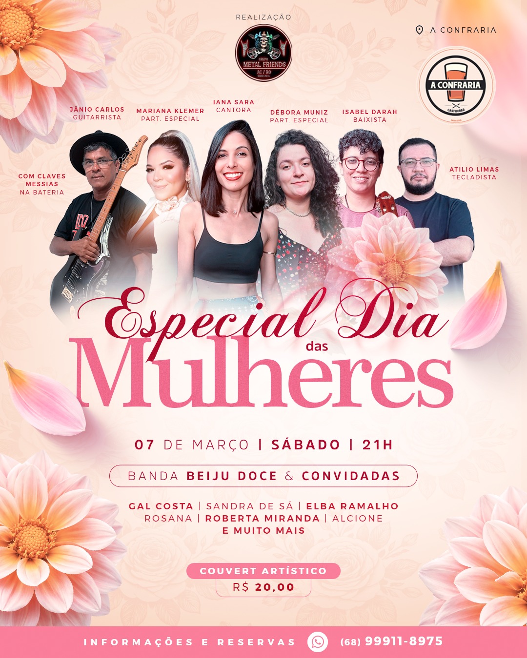 Um show especial em homenagem ao Dia Internacional da Mulher será realizado no próximo sábado, 7 de março, em Rio Branco. O evento acontece a partir das 21h, no espaço cultural A Confraria.
