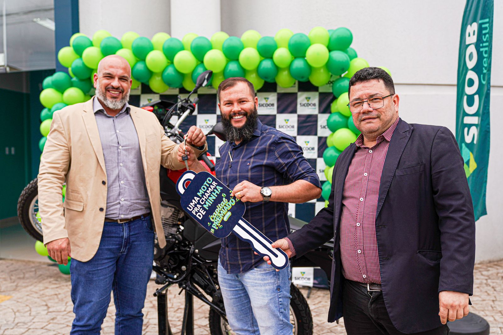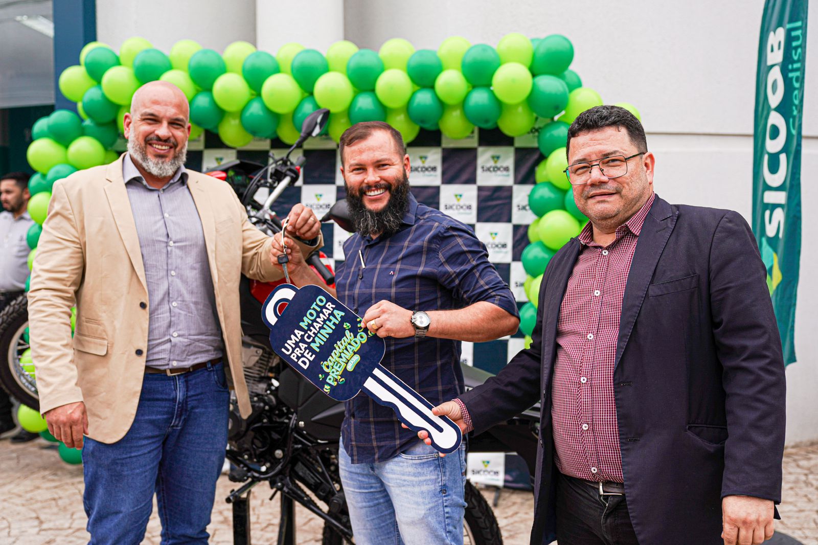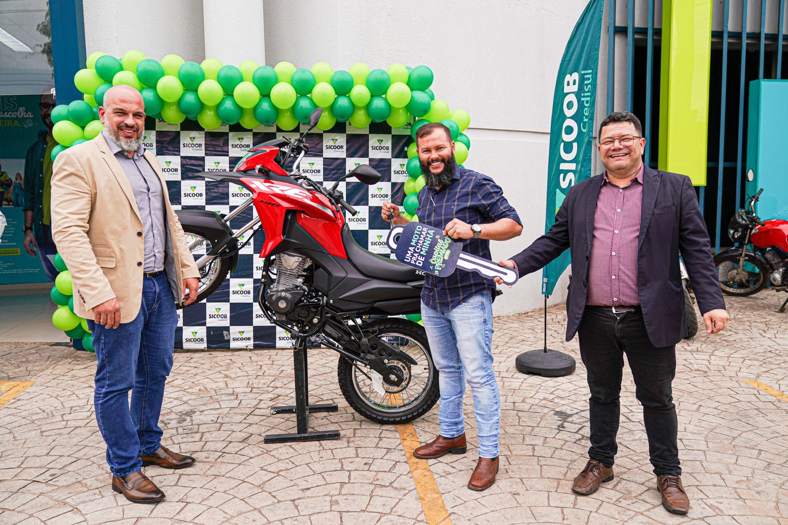 A agência da Sicoob Credisul em Rio Branco (AC), localizada na Rua Isaura Parente, realizou na segunda-feira, 27 de maio, a entrega oficial de uma moto Honda XRE-190 ao cooperado Ozeias Alves Medeiro. O empresário, que atua no setor de autopeças, foi sorteado na campanha nacional ‘Capital Premiado’. A campanha, agora em sua segunda edição, permite que 7,9 milhões de cooperados dos Sicoob de todo o país concorram a prêmios diários. Cada R$ 200,00 integralizados na Conta Capital garantem um número da sorte, possibilitando a participação em sorteios instantâneos de 10 mil pontos – programa de fidelidade e marketplace -, para uso no site ou app Coopera, além de 16 carros e 18 motocicletas.