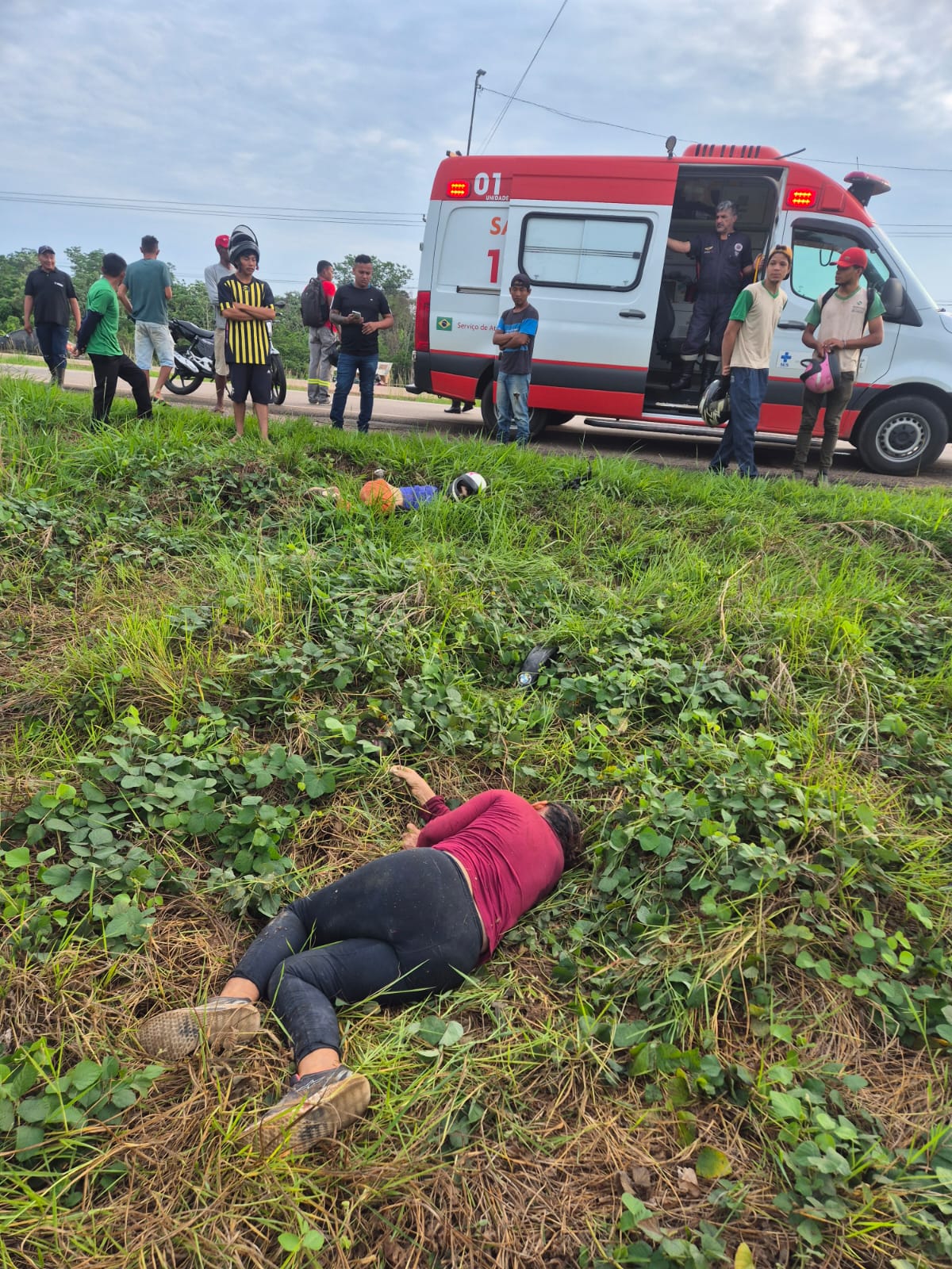 Um casal, que estava em uma motocicleta, perdeu o controle do veículo e bateu violentamente em poste de energia elétrica. O condutor e a passageiras morreram no local, mas os corpos só foram encontrados no período da manhã.