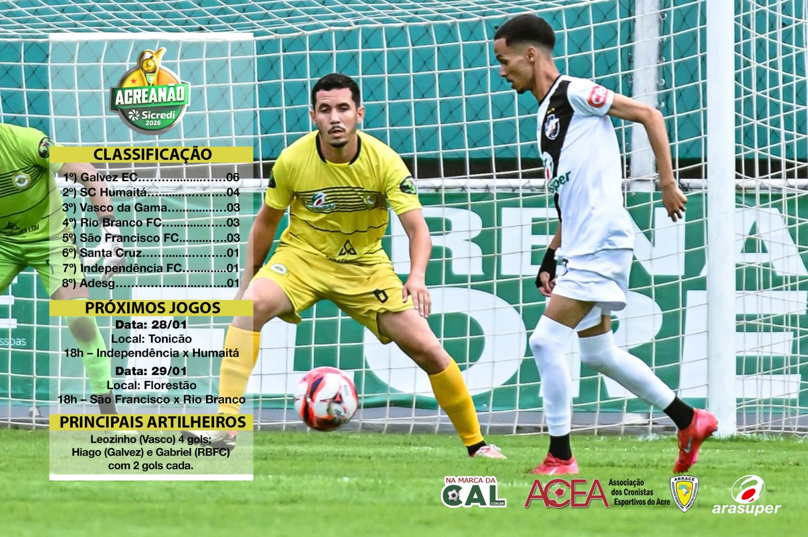 Vasco da Gama e Adesg retornam a campo no próxima sábado (31). O Vasco-AC encara o Santa Cruz-AC, às 15h. Por outro lado, o time da Adesg busca recuperação diante do líder Galvez, às 17h. Os jogos serão disputados de portões fechados no Estádio Tonicão.
